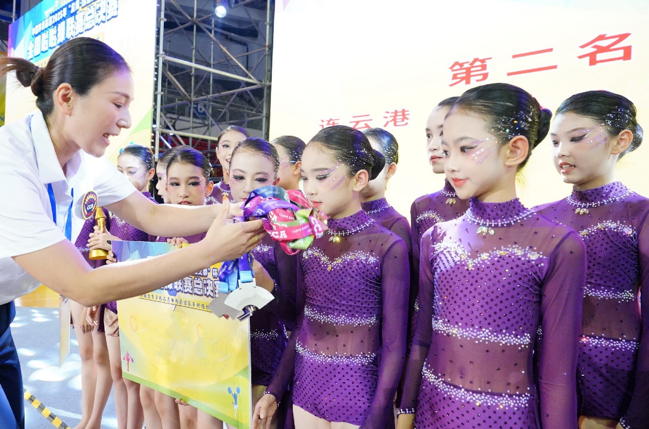 ?日前,“龙南?围屋之都” 杯全国啦啦操联赛的舞台上,聚光灯耀眼,音乐激昂。江苏省连云港市苍梧小学的孙若妍、田忆晨、刘予乐、石婧瑄、戚馨月、岳灵犀等同学身着闪亮队服,动作整齐划一,每一个旋转、跳跃都精准到位,脸上洋溢着自信笑容。最终,他们凭借出色发挥,在爵士规定动作 1 级组比赛里荣获全国第二名。这一佳绩,如同一束光,照亮了这个暑期苍梧小学丰富多彩的校园生活画卷。???